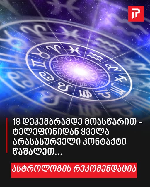 ასტროლოგიური ბლოგის ავტორი, რადიო წამყვანი თაკო მელიქიშვილი 18 დეკემბრამდე შესასრულებელ მნიშვნელოვან რეკომენდაციას გვიზიარებს.