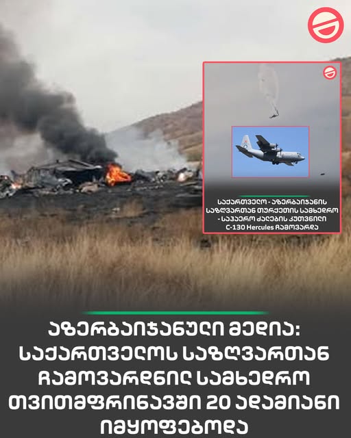 საქართველო-აზერბაიჯანის საზღვართან ჩამოვარდნილ სამხედრო თვითმფრინავში 20 ადამიანი იმყოფებოდა | ინფორმაციას აზერბაიჯანული მედია თურქეთის თავდაცვის სამინისტროზე დაყრდნობით ავრცელებს Post navigation 15 წლის გოგო გარდაცვლილი იპოვეს – ნახეთ სად მოხდა შემთხვევა? 12 ნოემბრის ასტროლოგიური პროგნოზი